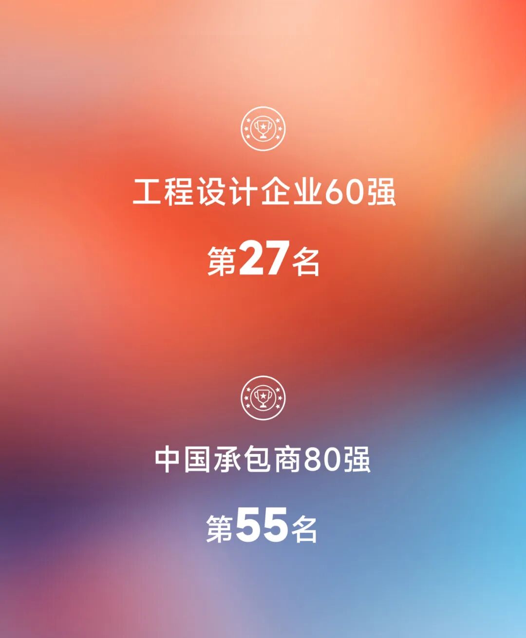 ENR是全球工程建设领域的权威学术杂志,其创办的ENR榜单排名在全球建筑业界颇具影响力,是国际承包工程业公认的、较为全面反映年度国际工程市场发展状况的权威排名。“工程设计企业60强”和“中国承包商80强”和“工程设计企业60强”榜单以企业营收为核心评价指标,同时着重考量项目履约能力、技术创新水平、绿色发展实践及社会责任关键要素,被誉为行业发展的“风向标”,深受海内外关注。